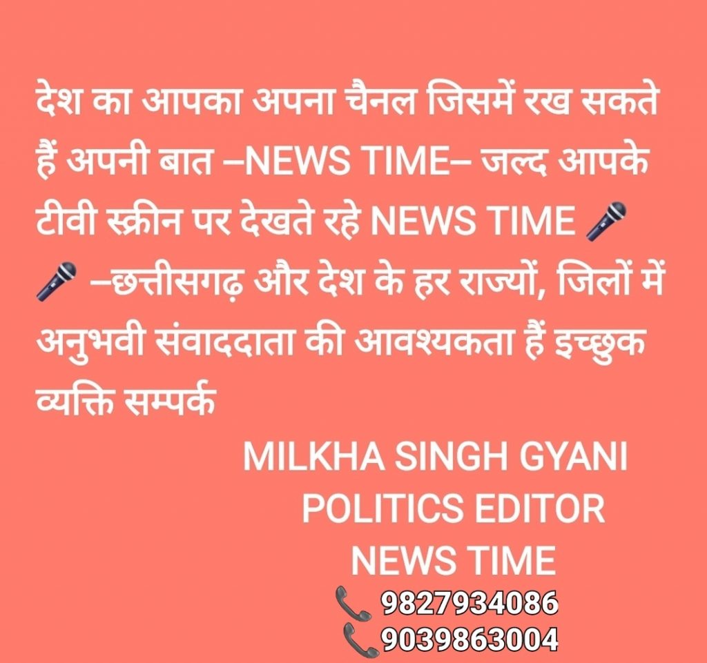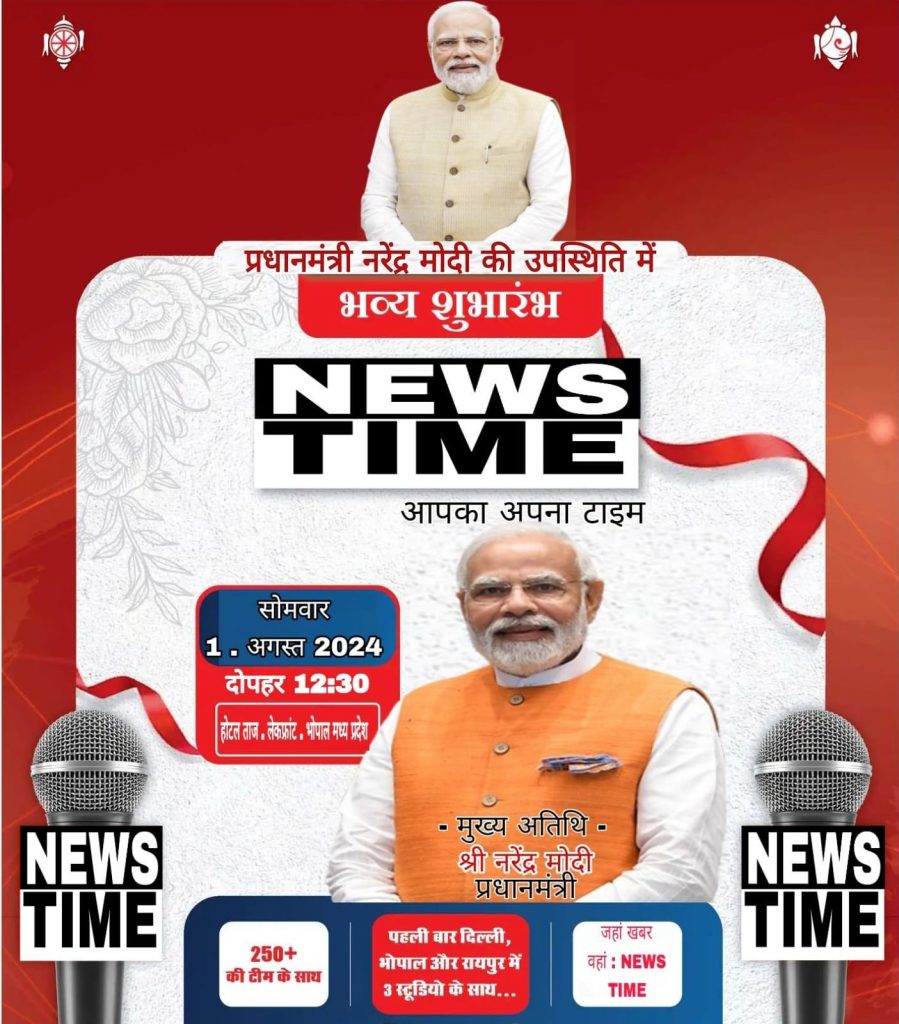 👉राजगांगपुर/ केंद्र से मान्यता प्राप्त नेशनल चैनल न्यूज़ टाइम का प्रसारण एवं उद्घाटन 1 अगस्त 2024 को प्रधानमंत्री नरेंद्र मोदी के द्वारा भोपाल मध्य प्रदेश में होटल ताज में दोपहर 12:30 बजे भव्य उद्घाटन उनके कर कमलो के द्वारा किया जाएगा दिल्ली, भोपाल, रायपुर से एक साथ प्रसारण किया जाएगा जिसे आप टेलीविजन में देख सकते हैं ज्ञात हो की वर्तमान मे मिल्खा सिंह ज्ञानी इसके पॉलिटिक्स एडिटर है तथा इंडिया 007 लाइव न्यूज़ के एडिटर इन चीफ और R भारत नेशनल न्यूज़ चैनल के संभाग प्रमुख हैं👇
