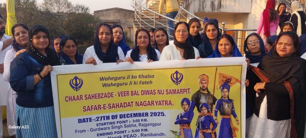 рд╡реАрд░ рдмрд╛рд▓ рджрд┐рд╡рд╕ рдХреЗ рдЕрд╡рд╕рд░ рдкрд░ рд╢реЛрднрд╛рдпрд╛рддреНрд░рд╛ рдореЗ рд╕рд┐рдЦ рдорд╣рд┐рд▓рд╛рдУрдВ рдПрд╡рдВ рдкреБрд░реБрд╖ рдиреЗ рд░рд╛рд╕реНрддреЗ рднрд░ рдирдиреНрд╣реЗ рдмрдЪреНрдЪреЗ рдХрд╛ рдЗрд╕ рдкрджрдпрд╛рддреНрд░рд╛ рдореЗрдВ рдЙрддреНрд╕рд╛рд╣рд╡рд░реНрдзрди рдХрд┐рдпрд╛ рдЧрдпрд╛ред рдПрд╡рдВ рдорд╣рд┐рд▓рд╛рдУрдВ рдиреЗ рд╢рдмреНрдж рдХреАрд░реНрддрди рдХрд╛ рдЧрд╛рдпрди рдкреНрд░рд╕реНрддреБрдд рдХрд┐рдпрд╛