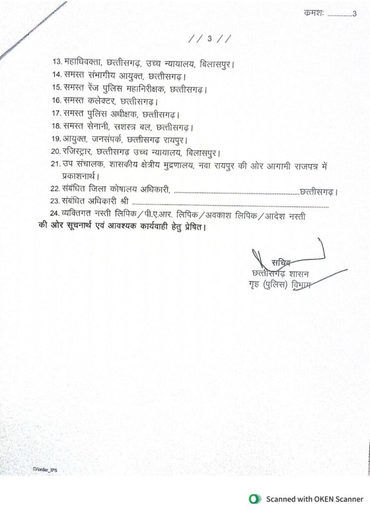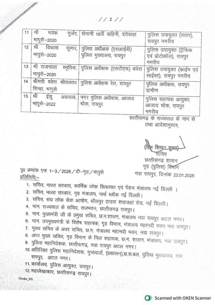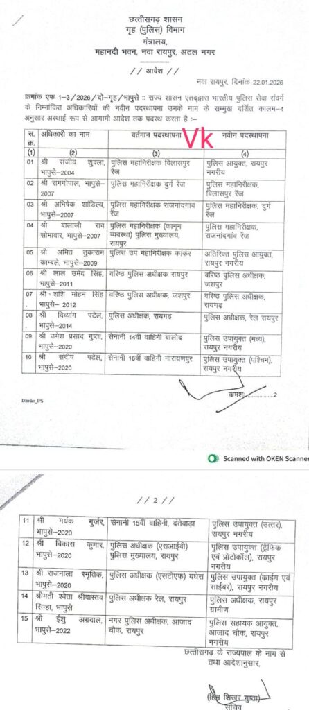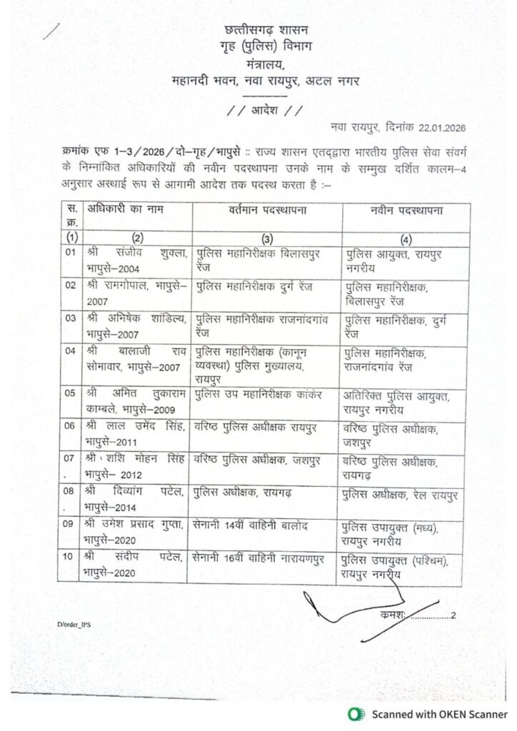 рдЫрддреНрддреАрд╕рдЧрдврд╝ рд░рд╛рдЬреНрдп рд╢рд╛рд╕рди рдиреЗ рдЕрдкрдиреЗ рдЕрдзрд┐рдирд╕реНрде рдкреБрд▓рд┐рд╕ рдЕрдзрд┐рдХрд╛рд░реАрдпреЛ рдореЗрдВ рдХрд┐рдпрд╛ рдлреЗрд░рдмрджрд▓