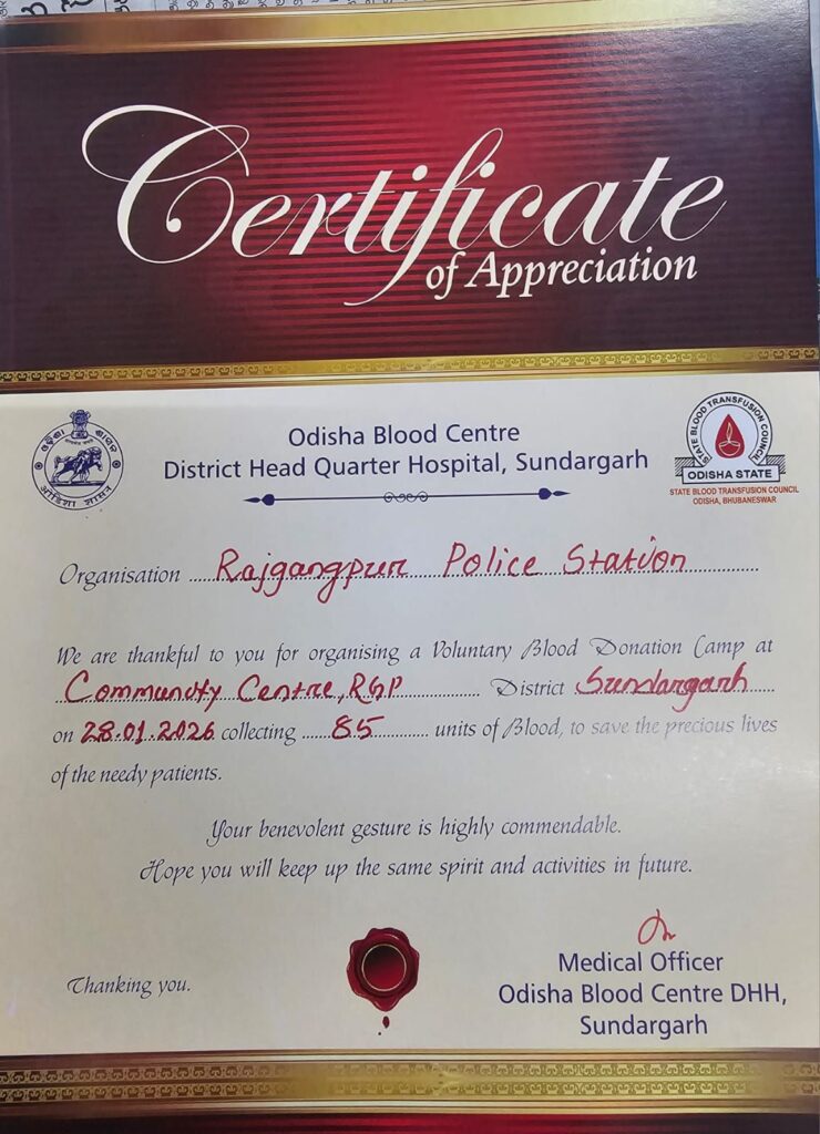 ЁЯТерд░рд╛рдЬрдЧрд╛рдВрдЧрдкреБрд░ рдкреБрд▓рд┐рд╕ рджреНрд╡рд╛рд░рд╛ рд░рдХреНрддрджрд╛рди рд╢рд┐рд╡рд┐рд░ 85 рдпреВрдирд┐рдЯ рд░рдХреНрдд рд╕рдВрдЧреНрд░рд╣ЁЯТе