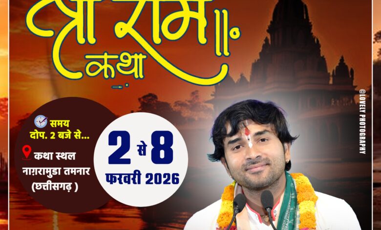 рд░рд╛рдпрдЧрдврд╝ (рддрдордирд╛рд░)редрд╕рдирд╛рддрди рдзрд░реНрдо рдХреА рдЬрд╛рдЧреГрддрд┐ рдПрд╡рдВ рднрд╛рд░рддреАрдп рд╕рдВрд╕реНрдХреГрддрд┐ рдХреЗ рдкреБрдирд░реНрдЬрд╛рдЧрд░рдг рдХреЗ рдкрд╡рд┐рддреНрд░ рдЙрджреНрджреЗрд╢реНрдп рд╕реЗ рдЧреНрд░рд╛рдо рдирд╛рдЧрд░рд╛рдореБрдбрд╝рд╛, рддрдордирд╛рд░ рдореЗрдВ рд╢реНрд░реАрд░рд╛рдо рдХрдерд╛ рдХрд╛ рднрд╡реНрдп рдЖрдпреЛрдЬрди рдХрд┐рдпрд╛ рдЬрд╛ рд░рд╣рд╛ рд╣реИред рдЗрд╕ рдЖрдзреНрдпрд╛рддреНрдорд┐рдХ рдЖрдпреЛрдЬрди рдореЗрдВ рд░рд╛рд╖реНрдЯреНрд░реАрдп рдХрдерд╛рд╡рд╛рдЪрдХ рдбрд╛. рдорд╣реЗрдиреНрджреНрд░ рдорд┐рд╢реНрд░рд╛ рдЬреА рдиреЗ рдкреНрд░рдердо рджрд┐рд╡рд╕ рдХреЗ рдЕрдкрдиреЗ рдУрдЬрд╕реНрд╡реА рд╡ рдкреНрд░реЗрд░рдгрд╛рджрд╛рдпрдХ рд╡рдЪрдиреЛрдВ рд╕реЗ рд╢реНрд░реАрд░рд╛рдо рдХреЗ рдЖрджрд░реНрд╢ рдЪрд░рд┐рддреНрд░ рдХрд╛ рд╕рдЬреАрд╡ рд╡рд░реНрдгрди рдХрд┐рдпрд╛ред