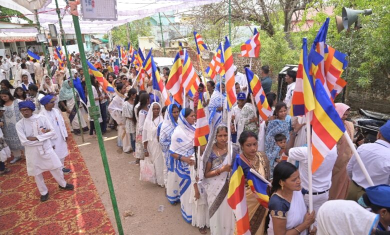 рдХрд╛рд░реНрдпрдХреНрд░рдо рдХреА рд╢реБрд░реБрдЖрдд рд╕реБрдмрд╣ рднрджрдВрддреЛрдВ рдХреЗ рд╕реНрд╡рд╛рдЧрдд рд╣реЗрддреБ рдирд┐рдХрд╛рд▓реА рдЧрдИ рднрд╡реНрдп рдзрдореНрдо рд╡рд╛рд╣рди рд░реИрд▓реА рд╕реЗ рд╣реБрдИред рд╕реБрд╕рдЬреНрдЬрд┐рдд рд╡рд╛рд╣рди рдореЗрдВ рднрдЧрд╡рд╛рди рдмреБрджреНрдз рдХреА рдкреНрд░рддрд┐рдорд╛ рдХреЛ рд╡рд┐рд░рд╛рдЬрд┐рдд рдХрд░ рдирдЧрд░ рднреНрд░рдордг рдХрд░рд╛рдпрд╛ рдЧрдпрд╛, рдЬрд┐рд╕рдореЗрдВ рдмрдбрд╝реА рд╕рдВрдЦреНрдпрд╛ рдореЗрдВ рдмреМрджреНрдз рдЕрдиреБрдпрд╛рдпрд┐рдпреЛрдВ рдПрд╡рдВ рдирд╛рдЧрд░рд┐рдХреЛрдВ рдиреЗ рднрд╛рдЧ рд▓рд┐рдпрд╛ред